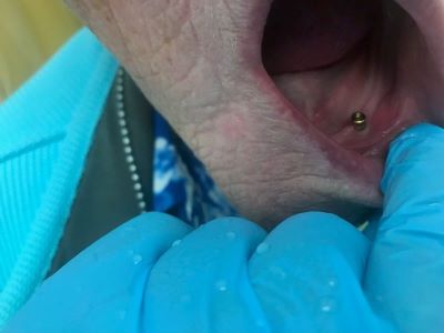 This patient had been to other Denturists. Her Lower Denture was loose and not Engaging on Implants. Franco changed the Abutments to 1MM longer and the Denture is tight. This patient is Very Happy to have found Franco.