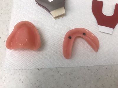 (This patient has a Complete Upper Denture and Complete Lower Implant Denture on 2 Implants).